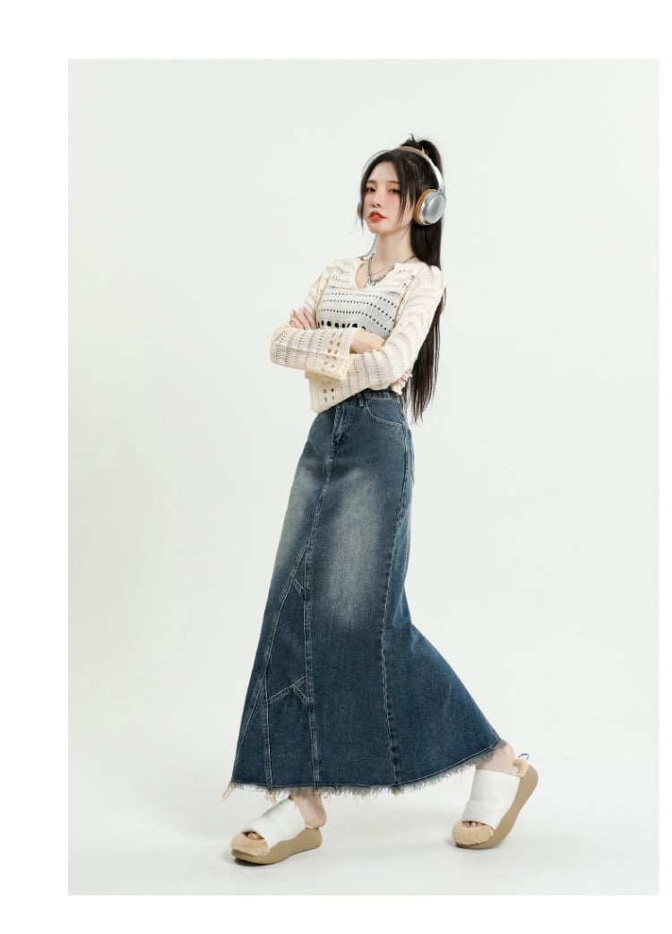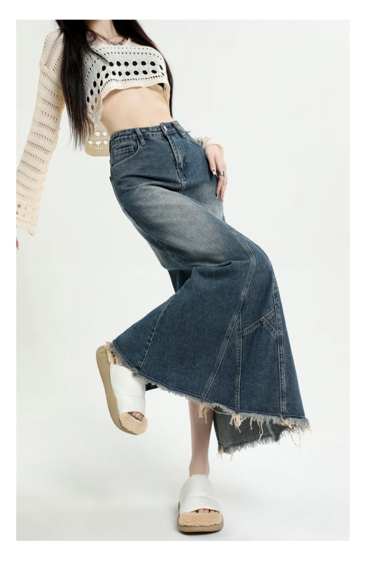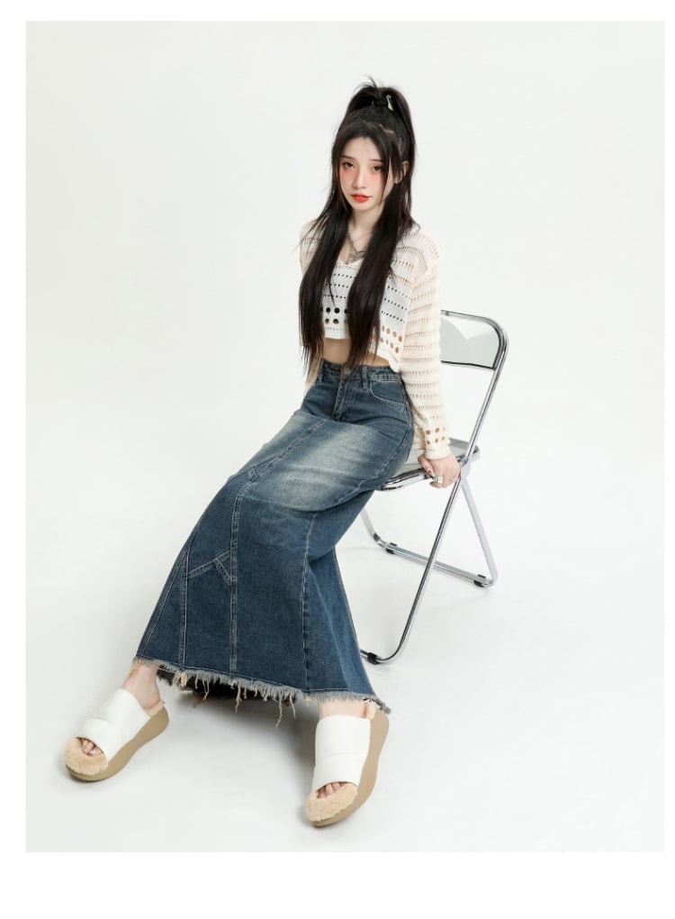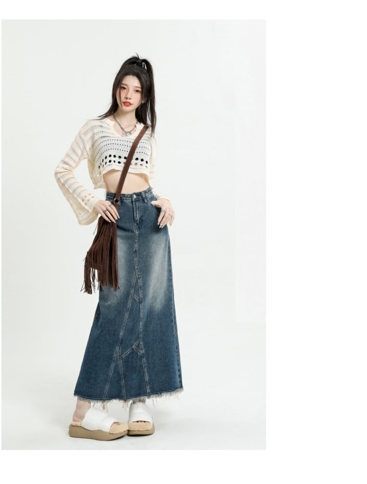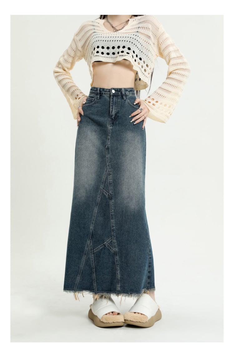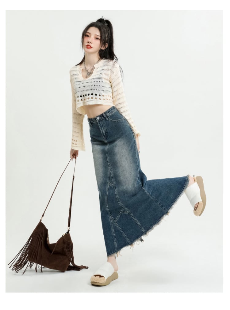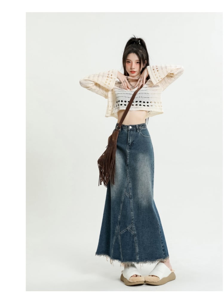 Discover the perfect blend of style and comfort with our Niche Hot Girl Design Lotus Leaf Sheath Fishtail Skirt, tailored specifically for the modern woman. This stunning mid-length denim skirt features a chic solid color pattern that effortlessly complements any casual outfit.